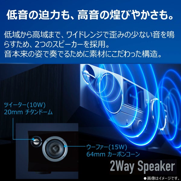 高品質の2Wayスピーカーと独自の本体デザインが、再現された音や音場感まで美しく表現。