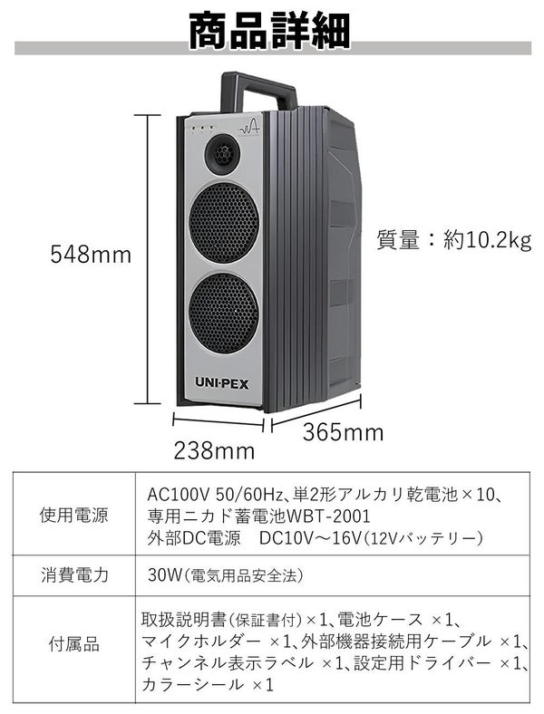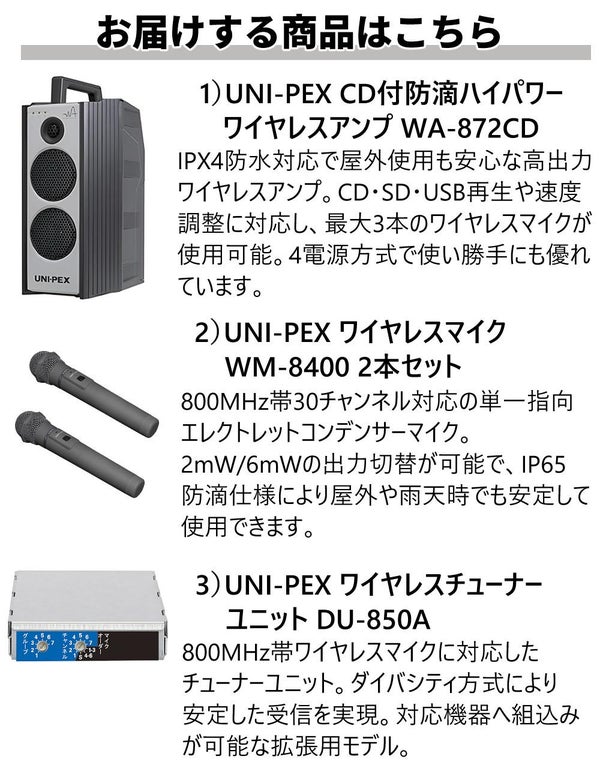 1)UNI-PEX ユニペックス WA-872CD CD付防滴ハイパワーワイヤレスアンプ