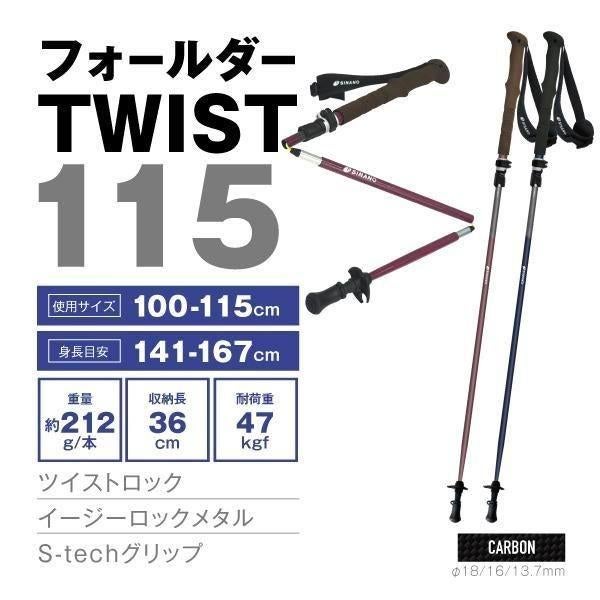 シナノ トレッキングポール フォールダー TWIST115 ネイビー ワイン カーボン製 折りたたみ式 100-115cm SINANO