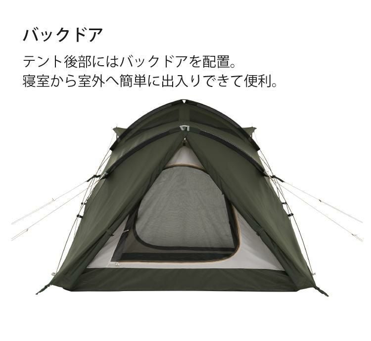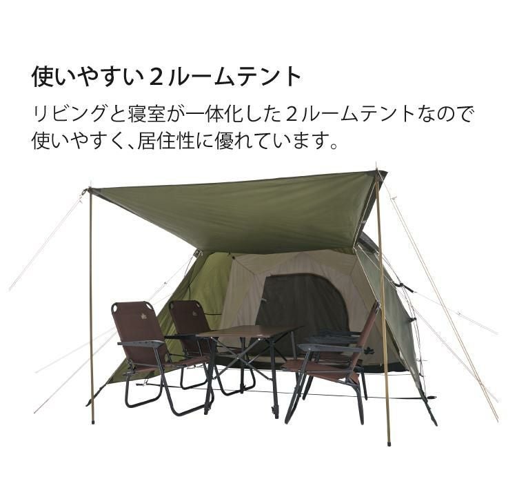 リビングと寝室が一体化した2ルームテントなので使いやすく、居住性に優れています。