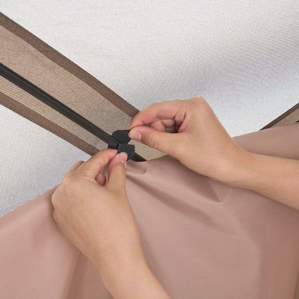 面ファスナーで着脱が簡単なサイドウォール×3面付き。強い日差しも遮ります。