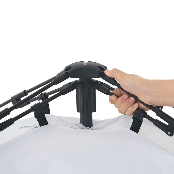 折りたたまれたフレームを広げてロックするだけなので組立て簡単&撤収もスピーディー。
