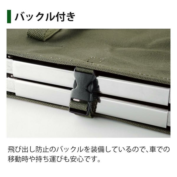 ● バックル 飛び出しを防止するバックルを装備。 ● 収納 焚き火テーブル ラージ 2台収納。