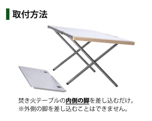 焚き火テーブルの内側の脚を差し込むだけ。