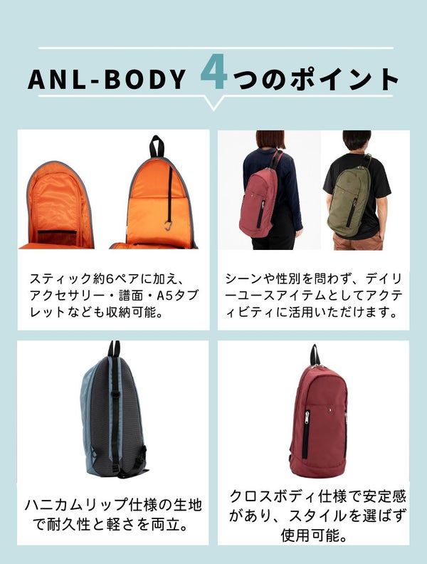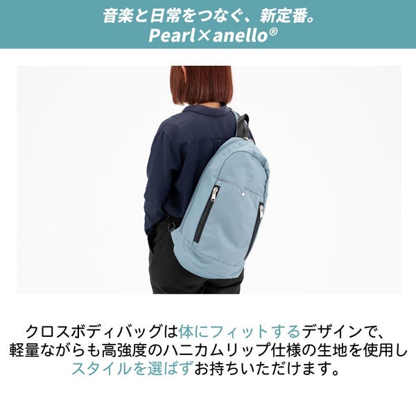 〈Pearl×anello?〉コラボクロスボディバッグは体にフィットするデザインで、軽量ながらも高強度のハニカムリップ仕様の生地を使用しスタイルを選ばすお持ちいただけます。