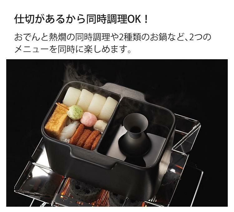 中央に仕切りがあるので、2種類の味付けを楽しんだり、熱燗とおでんを同時に温めたりとさまざまな使い方ができる。