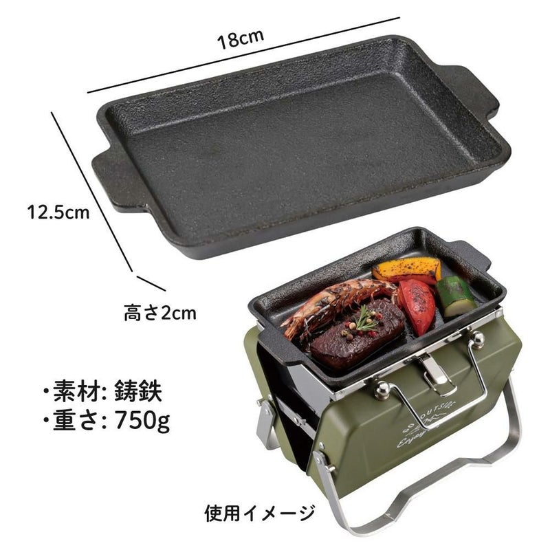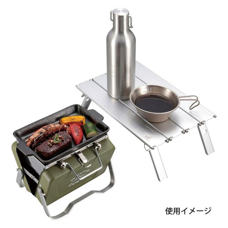 CAPTAIN STAG キャプテンスタッグの モンテV型卓上グリル Monte Portable Folding BBQ Grill は、 ソロキャンプ や お花見 パーティー、 行楽にぴったりの ミニグリル。 鋳鉄製の プレートがセットなので、網焼き料理 鉄板料理などの ちょい焼き にも最適。 BBQ ( バーベキュー ) をもっと気軽に楽しめます。 トランク型になる コンパクト収納 仕様で、持ち運びもラクラク。ベランダやアウトドアシーンで活躍する、便利でスマートな 卓上グリル です。
