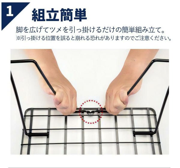 組み立ては脚を広げてツメを天面の格子に引っ掛けるだけ。