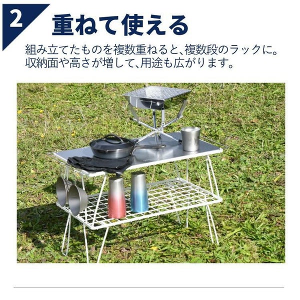 脚高のある棚で、キャンプサイトをもっと快適に。荷物を雨水や泥汚れから守ります。