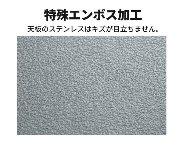 ● 熱やキズに強いステンレス製天板