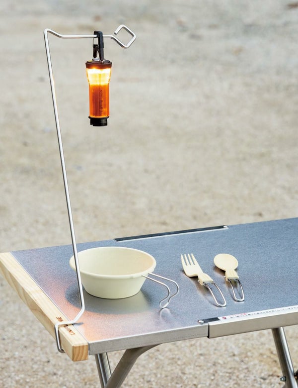 使いたいときにすぐに 焚き火テーブルの木柄に 取付られるランタンハンガー