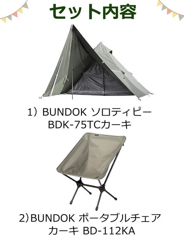 BUNDOK ソロティピー BDK-75TCカーキ ポータブルチェア BD-112 セット バンドック(ラッピング不可)