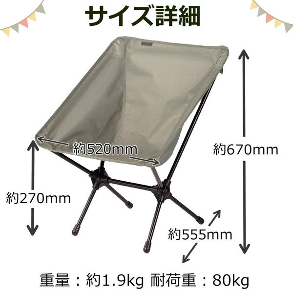 サイズ:約520×555×670mm座面高さ 約270mm 耐荷重 80kg 収納時 約390×120×100mm)