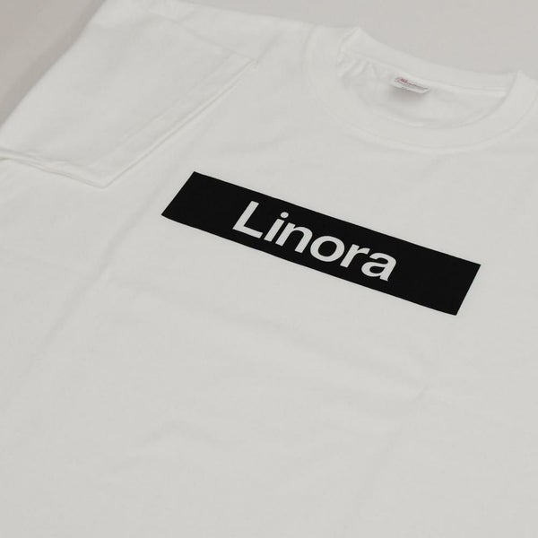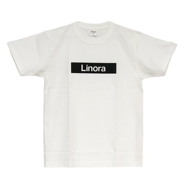 Rinoraの ロゴがプリントされた 白Tシャツ