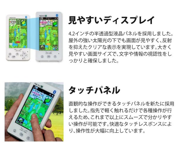グリーン上では傾斜を読む負担が軽減され、パターの精度向上をサポート。アンジュレーションモード時にもグリーンの向きが自動で回転し、適切な距離を表示するベタピンナビ機能が使用できます。