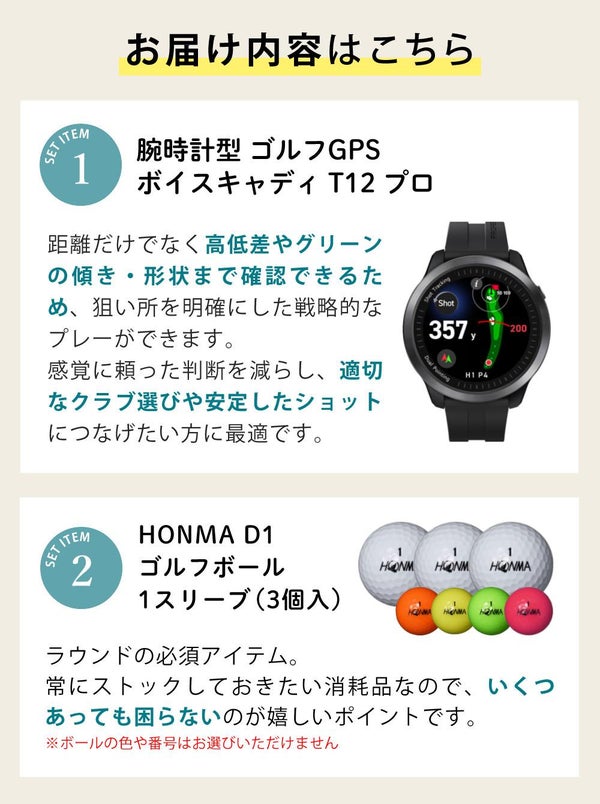 ボイスキャディ T12 プロ ボール付き ゴルフナビ GPS 腕時計タイプ Voice Caddie T12PRO