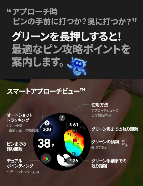 コンパス機能〇 IP地点/グリーン〇 グリーン