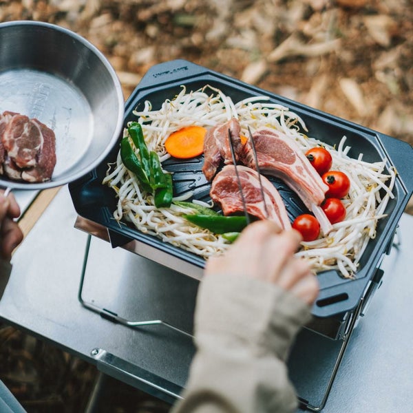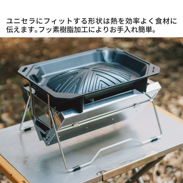 アウトドアで本格的な ジンギスカン ( ラム肉 ) を楽しめる、 ユニフレーム の ユニセラ 専用 ジンギスカン鍋 。 軽量 で扱いやすい 角型アルミ鍋 は、 焼肉 や 成吉思汗 料理 に最適。 ソロキャンプ や バーベキューグリル 、 カセットコンロ でも使える万能な グリルプレート で、 アウトドア料理 の幅が広がります