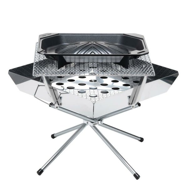・ファイアグリル…ジンギスカン鍋の脚の爪がバーベキュー網にしっかり噛み安定します。