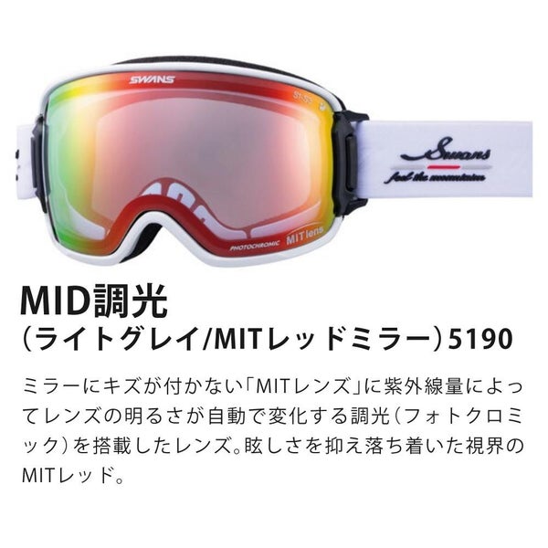 | レンズ機能 | MIT LENS(ミラーインサートレンズ) フォトクロミックレンズ(調光レンズ) PREMIUM ANTI-FOG(高性能くもり止め) クラリテックスコート(撥水加工) |