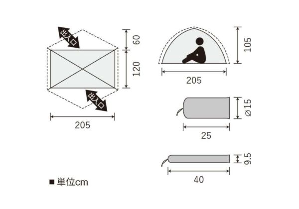 | 素材 | フライシート/20Dポリエステルリップストップ(ポリウレタン防水加工)