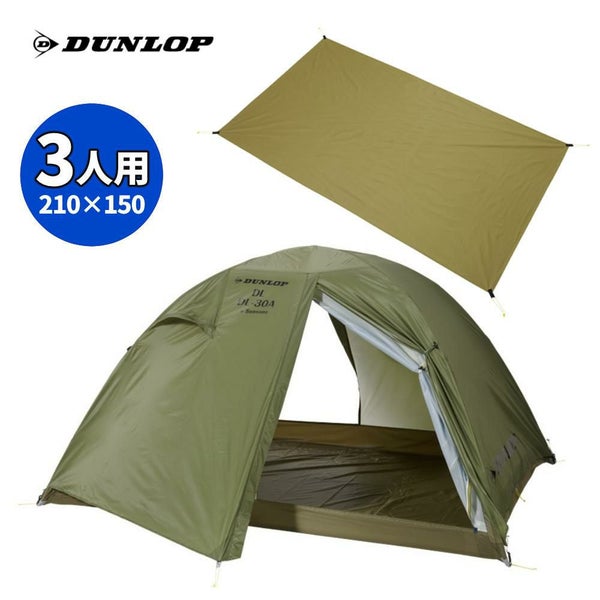 ダンロップ 両入口軽量ダブルウォールテント DL-30A 4S グランドシート付 3人用 両入口 オリーブ PuroMonte 山岳テント