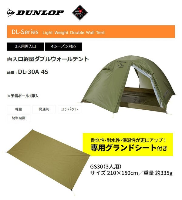 DUNLOP ダンロップ テント 両入口軽量ダブルウォールテント 山登り 登山 アルパインテント DL-30A 4S