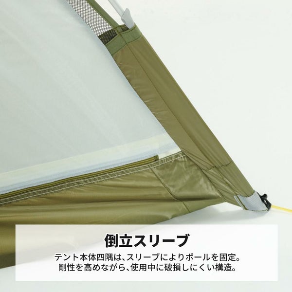 『盛夏での登山』や『ツーリング』で使いやすい通気性重視の両入口テント。多くのシーンで使用できる4シーズン用テント。