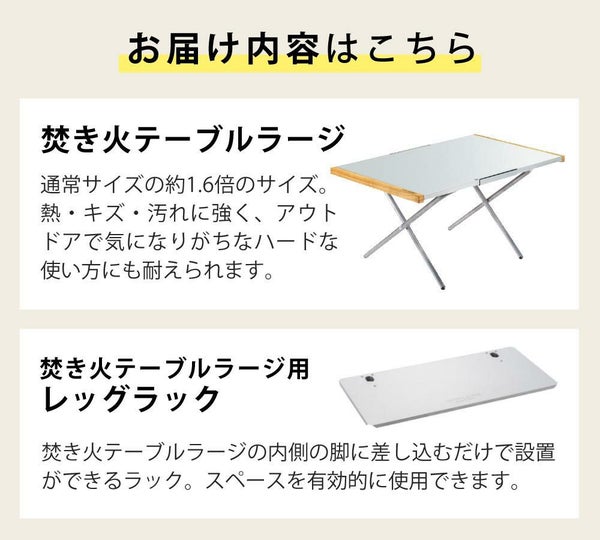 ガンガン使える頼もしいサイドテーブル 「焚き火テーブルラージ」に 専用レッグラックが付いた セット