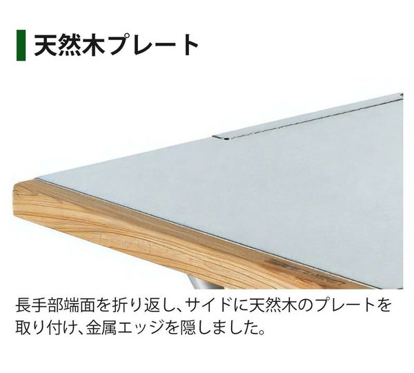 | 材質 | 天板:ステンレス鋼(特殊エンボス加工) サイド:天然木 スタンド:ステンレスパイプ直径19mm |