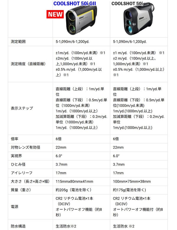 ニコン ゴルフ レーザー距離計 COOLSHOT 50i GII 高低差対応 軽量 Nikon (クロス&CS2電池付)