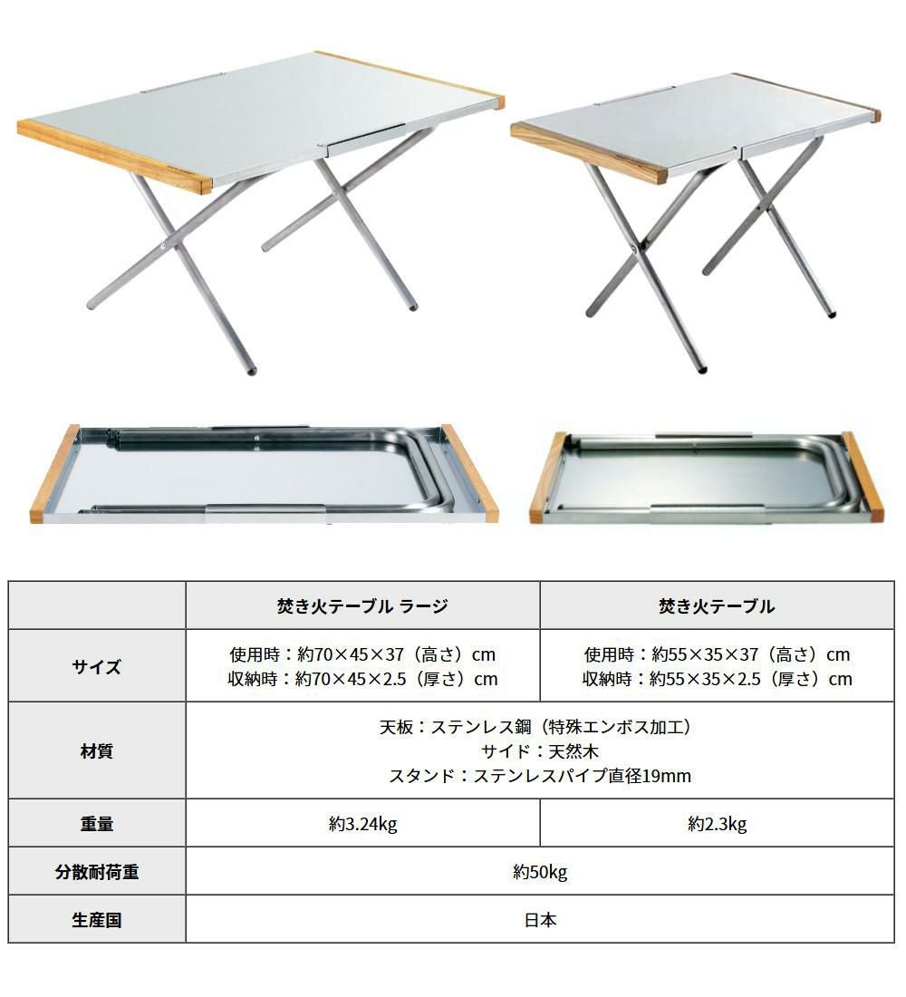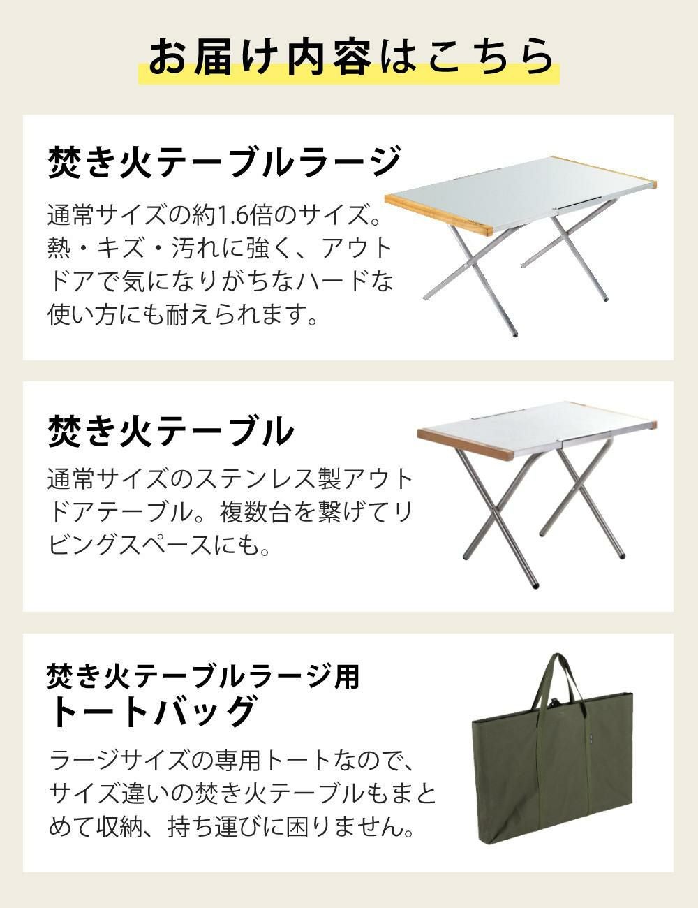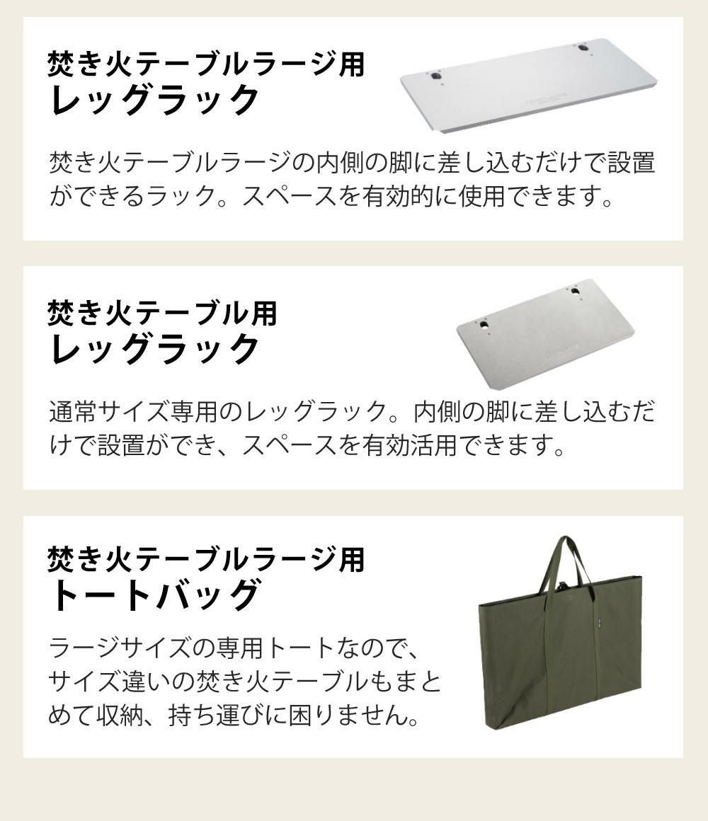 他の画像を見る キャンプ アウトドア テーブル レギュラーサイズ ラージサイズ 収納トート バッグ ラック パーツ ユニフレーム 焚き火テーブル 2種(レギュラー+ラージ) トート&レギュラー用ラック付き ステンレス アウトドアテーブル 販売価格 ¥ 31,570 税込 在庫切れ 詳細を見る お気に入りに登録する (0件)