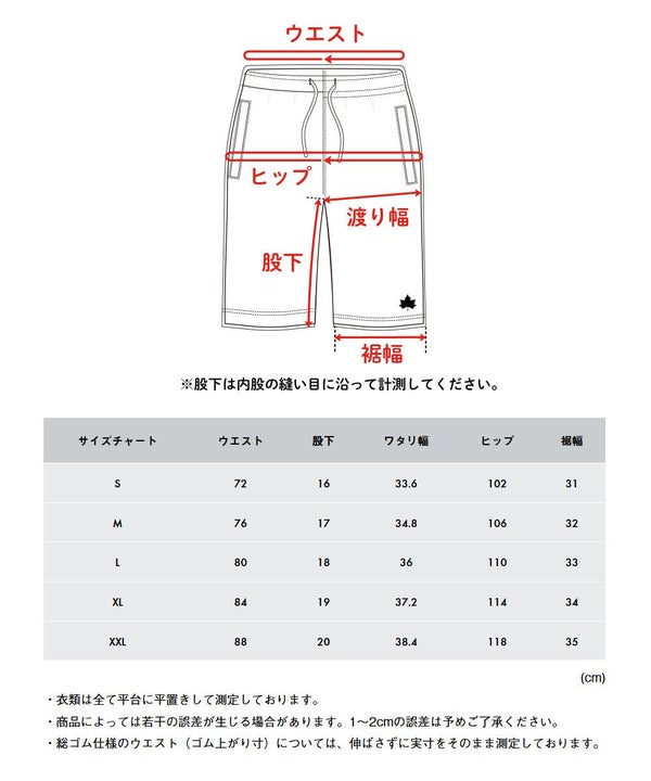 ・総ゴム仕様のウエスト(ゴム上がり寸)については、伸ばさずに実寸をそのまま測定しております。