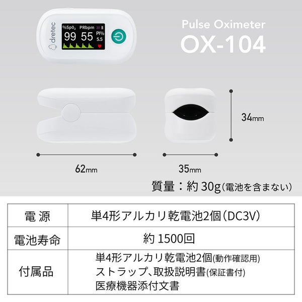 1)ドリテック パルスオキシメータ OX-104WT