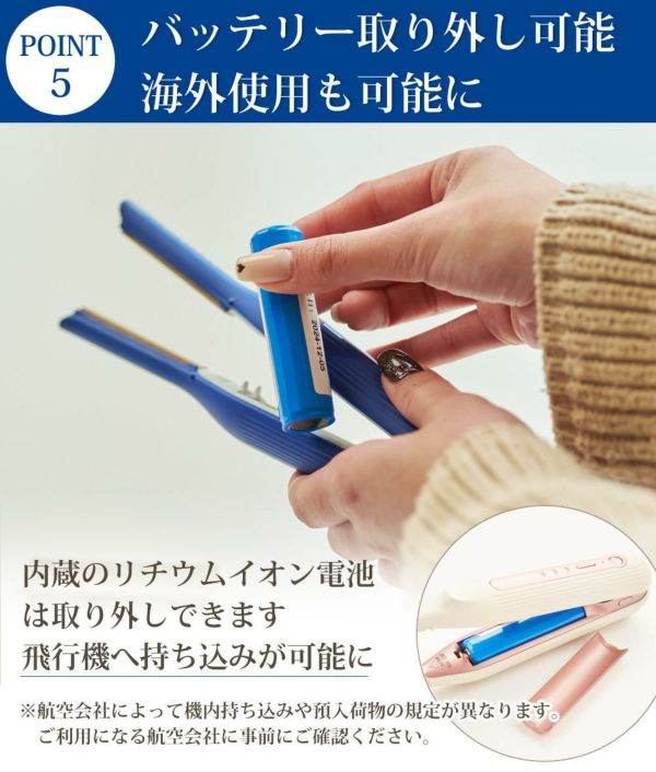 ●バッテリー取り外し可能で、飛行機でも安心。海外使用も可能に。