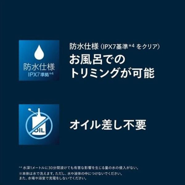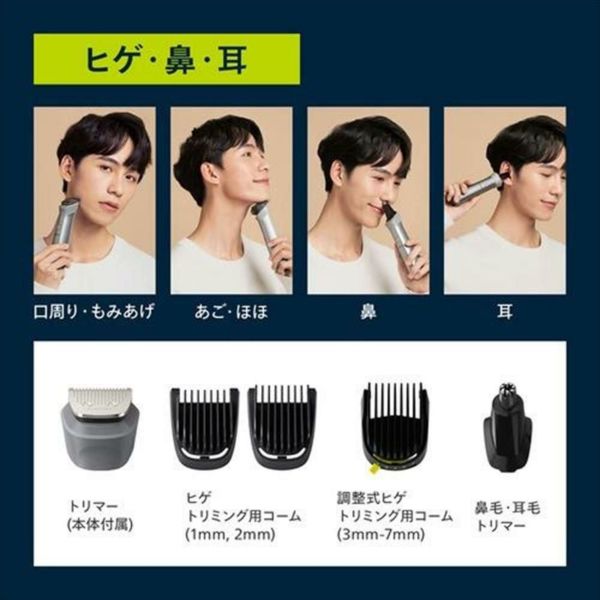付属品 | 本体、取扱説明書、ソフトポーチ、充電ケーブル、クリーニングブラシ、鼻毛・耳毛トリマー、ボディーグルーマー、ヒゲトリミング用コーム(1mm)、ヒゲトリミング用コーム(2mm)、調節式ヒゲトリミングコーム(3~7mm)、ヘアートリミング用コーム(9mm)、ヘアートリミング用コーム(12mm)、ヘアートリミング用コーム(16mm)、ボディートリミング用コーム (3mm) |