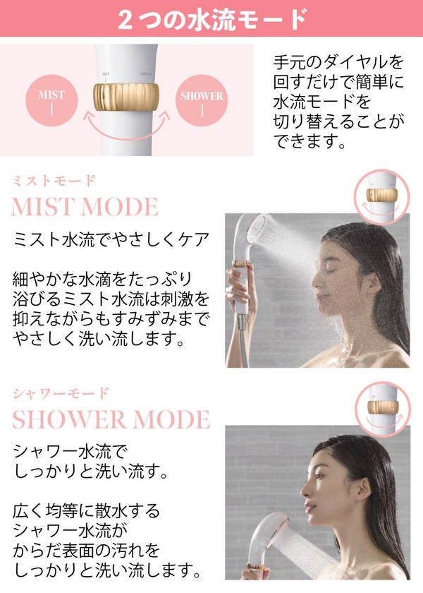 シャワーモードでしっかり洗い流して、ミストモード(ミスト ミストシャワー)でやさしくケア(肌ケア 美容 節水 美肌 保湿 保温)。