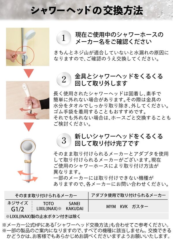 ・現在ご使用のシャワーホースにより取り付け方法が異なります。