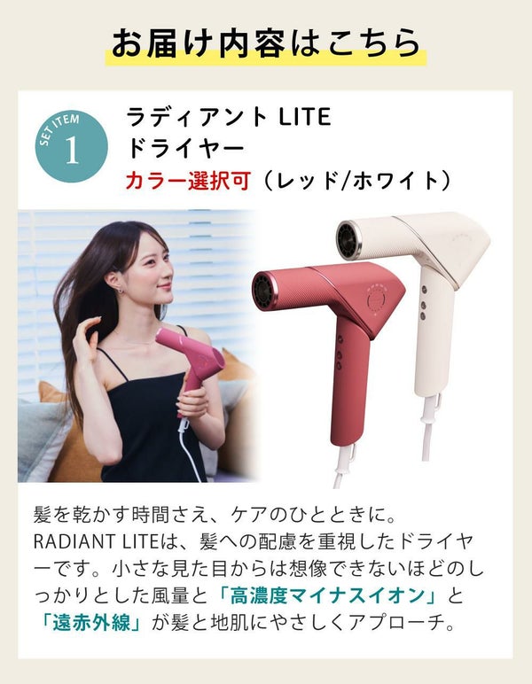 【正規販売店】ラディアント LITE TC-502 ヘアドライヤー ヘアケア プレゼントにもおすすめ 白 赤 温風 冷風 切り替え機能 ヘアケア 頭皮ケア ラディアント ライト ドライヤー TC-502 ホワイト レッド 0359 マイクロファイバー ヘアドライタオル 2点セット