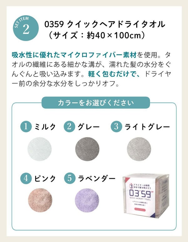 2)0359 マイクロファイバー クイックヘアドライタオル(カラー選択)