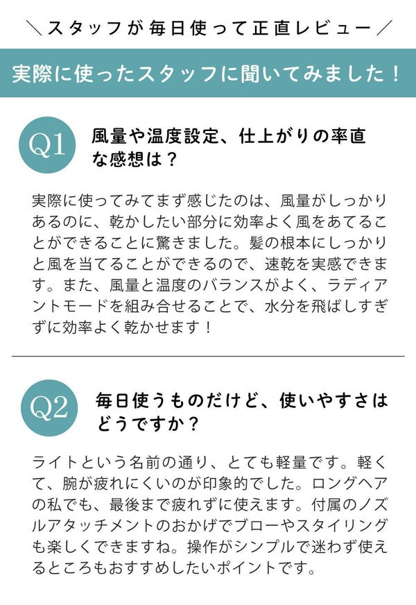 髪に与える熱ダメージやオーバードライを防ぎながら、髪のツヤ感やまとまり感をアップさせます。