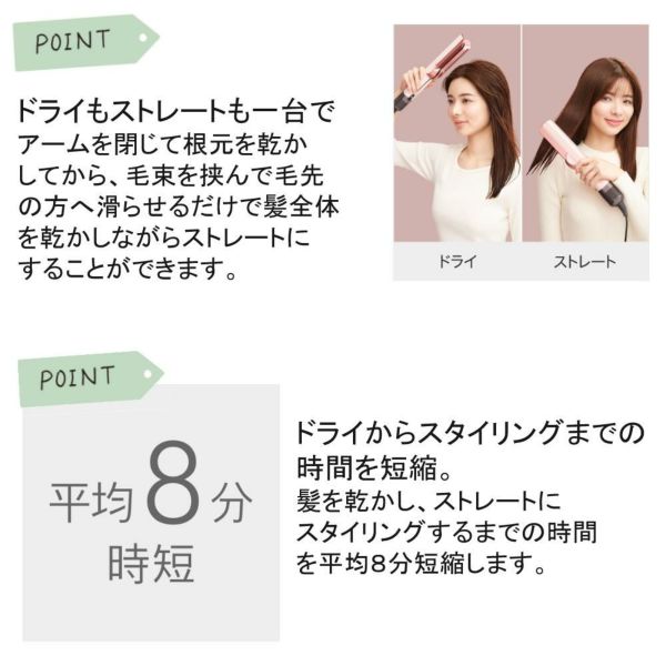 ウェットモードとドライモードを搭載し、濡れた髪からでもスタイリングが可能。