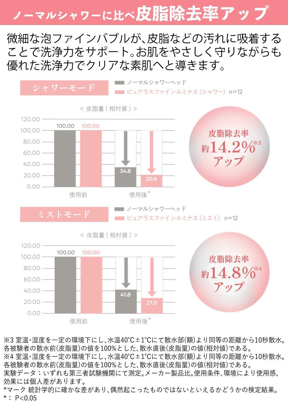 ※ 皮脂除去率は室温・湿度を一定の環境下にし、水温40℃±1℃にて散水部(額)より同等の距離から10秒散水。