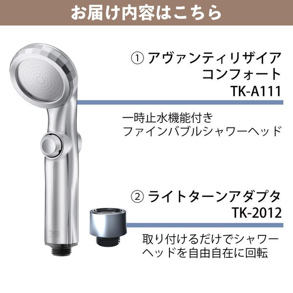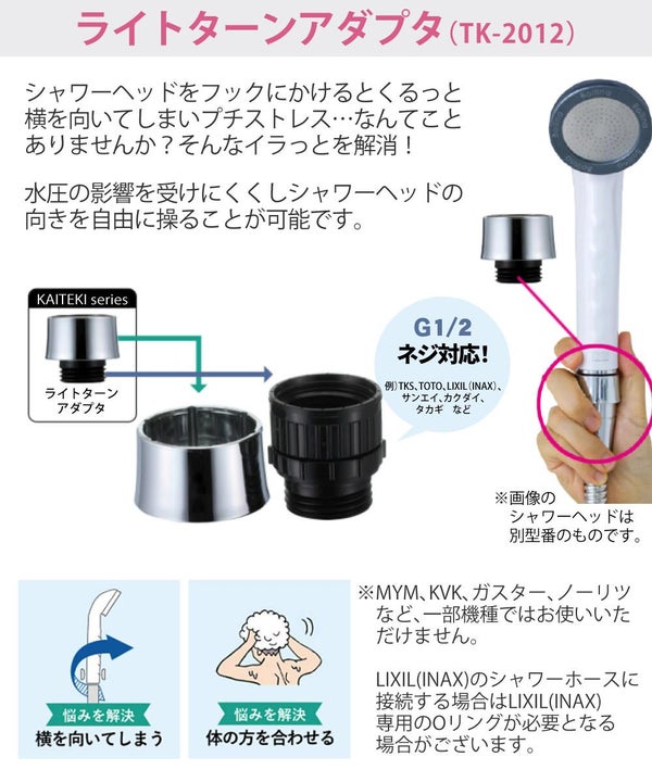 アダプタ (TK2012) で シャワーヘッド が くるくる 自由自在に 回転。向きが調整可能 に 回る。