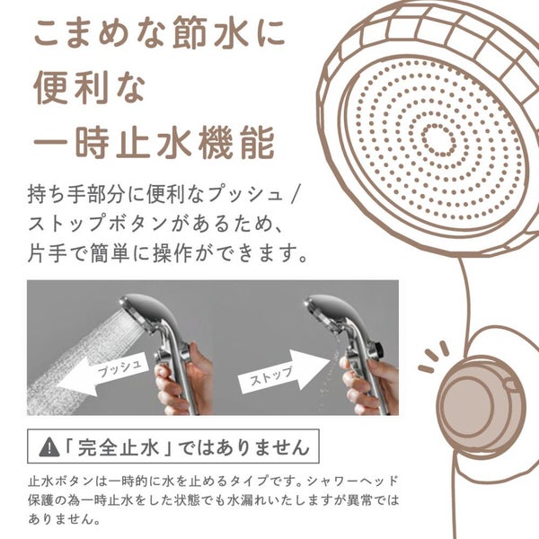 水道代 節約 に 役立つ 止水ボタン 搭載 の バス シャワー。日本製。