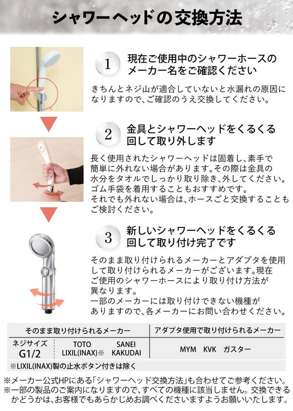 シャワーヘッドを取り替えるだけで、水の使用量をカット。