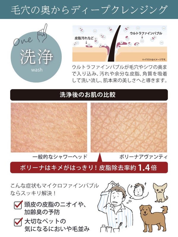 ウルトラファインバブルの超微細な気泡は、毛穴 やシワの奥まで入りこみ、お肌の汚れを吸着して、やさしく洗い流してくれるので、毛髪 の健康にも◎ 最近髪が弱って ボリューム が… 抜け毛 が気になる…なんて方にも、是非使って頂きたいです♪