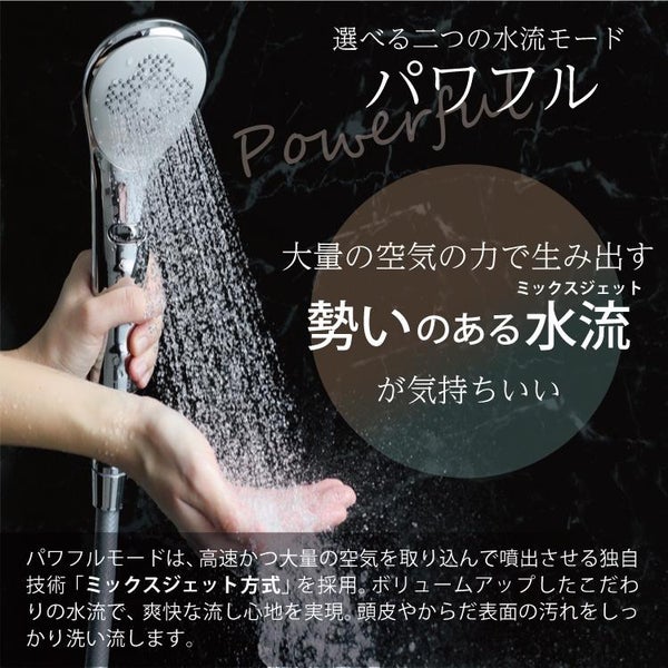 超微細な泡が肌本来の美しさへと導く[ビューティーモード]と、勢いのある水流が気持ちまで爽快にしてくれる[パワフルモード]。