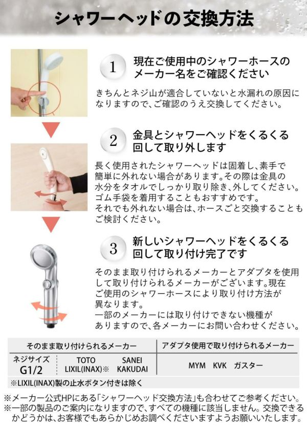 「G1/2」のネジ径シャワーに対応します。