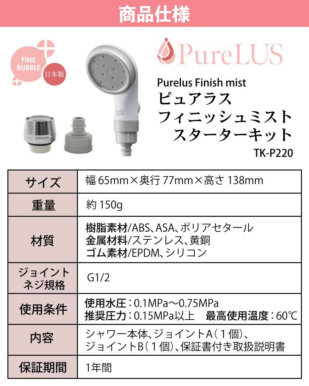 他の画像を見る おうちのシャワーに「プラスワン」 バスタイムの「仕上げ」にミストで全身ファインケア 選べる特典 TKS シャワーヘッド ピュアラスフィニッシュミスト スターターキット 日本製 ファインバブル TK-P220 販売価格 ¥ 9,900 税込 カートに入れる お気に入りに登録する (0件)